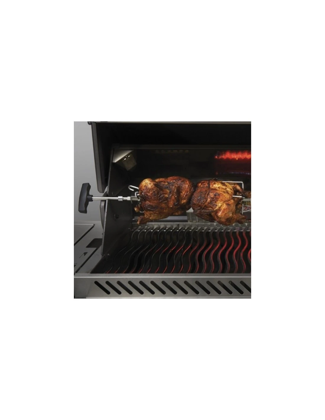 Idéale pour cuire des grosses pièces de viande, cette rôtissoire Napoleon s’adapte sur tous les Rogues 4 et 5 brûleurs.