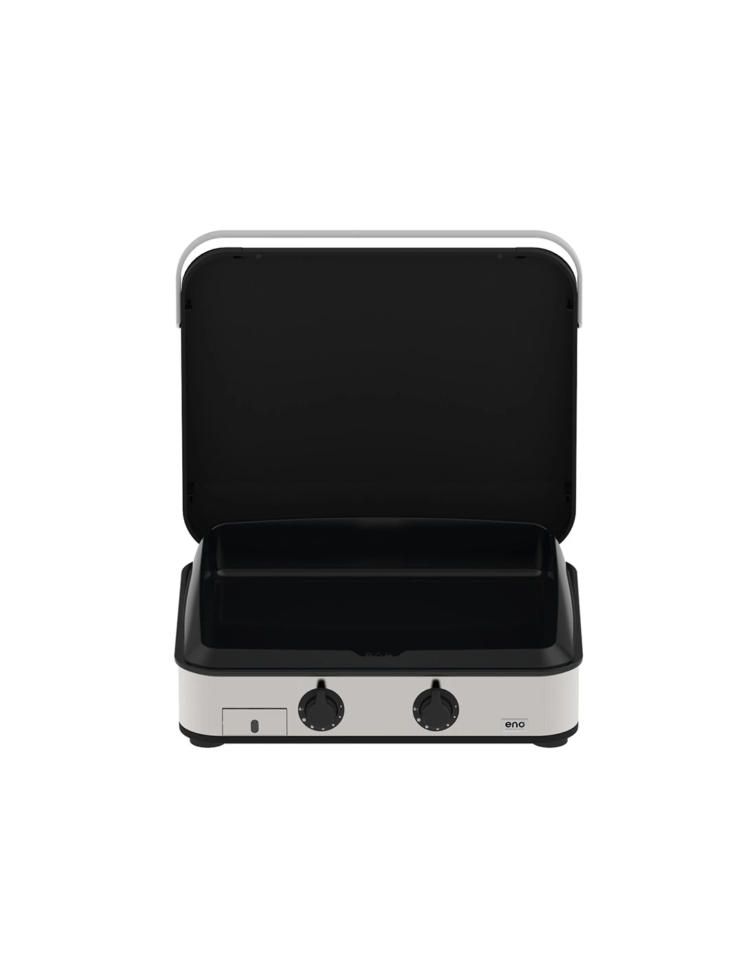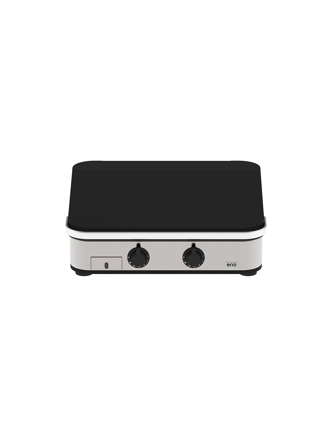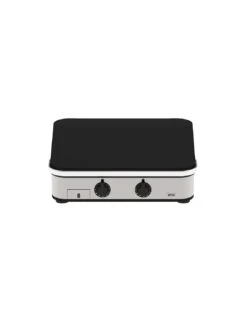 Plancha à gaz, en fonte épaisse 7 mm, pour 6 à 8 personnes, tout en inox qualité marine, avec capot de protection en acier galvanisé noir.