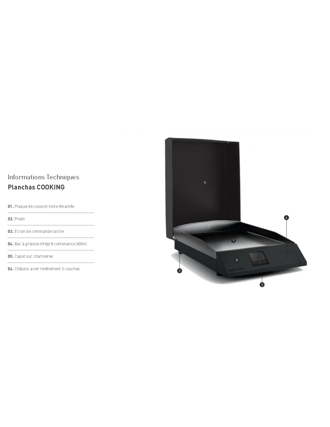 La plancha électrique Cooking est fabriquée avec une plaque en fonte émaillée sur un châssis acier.