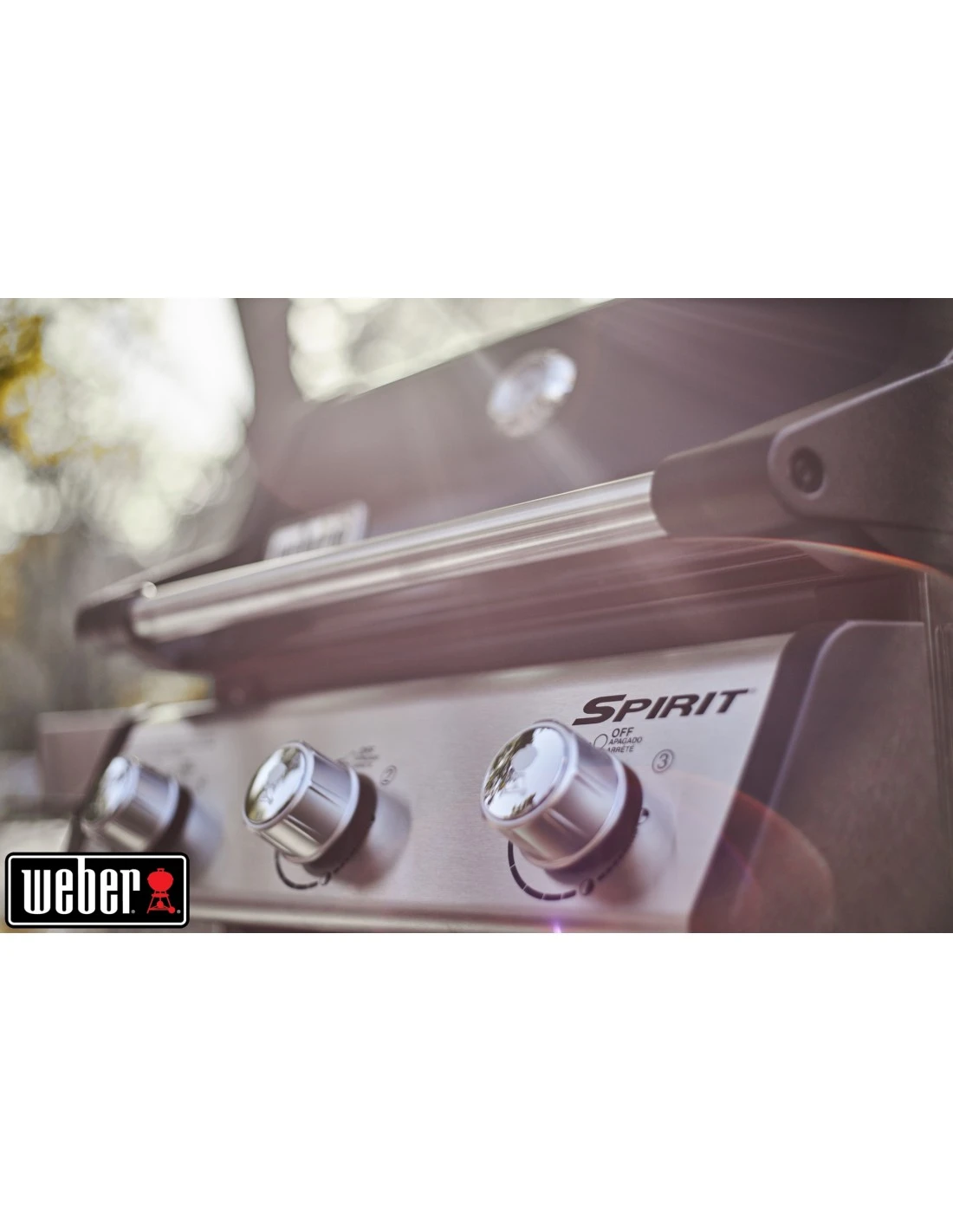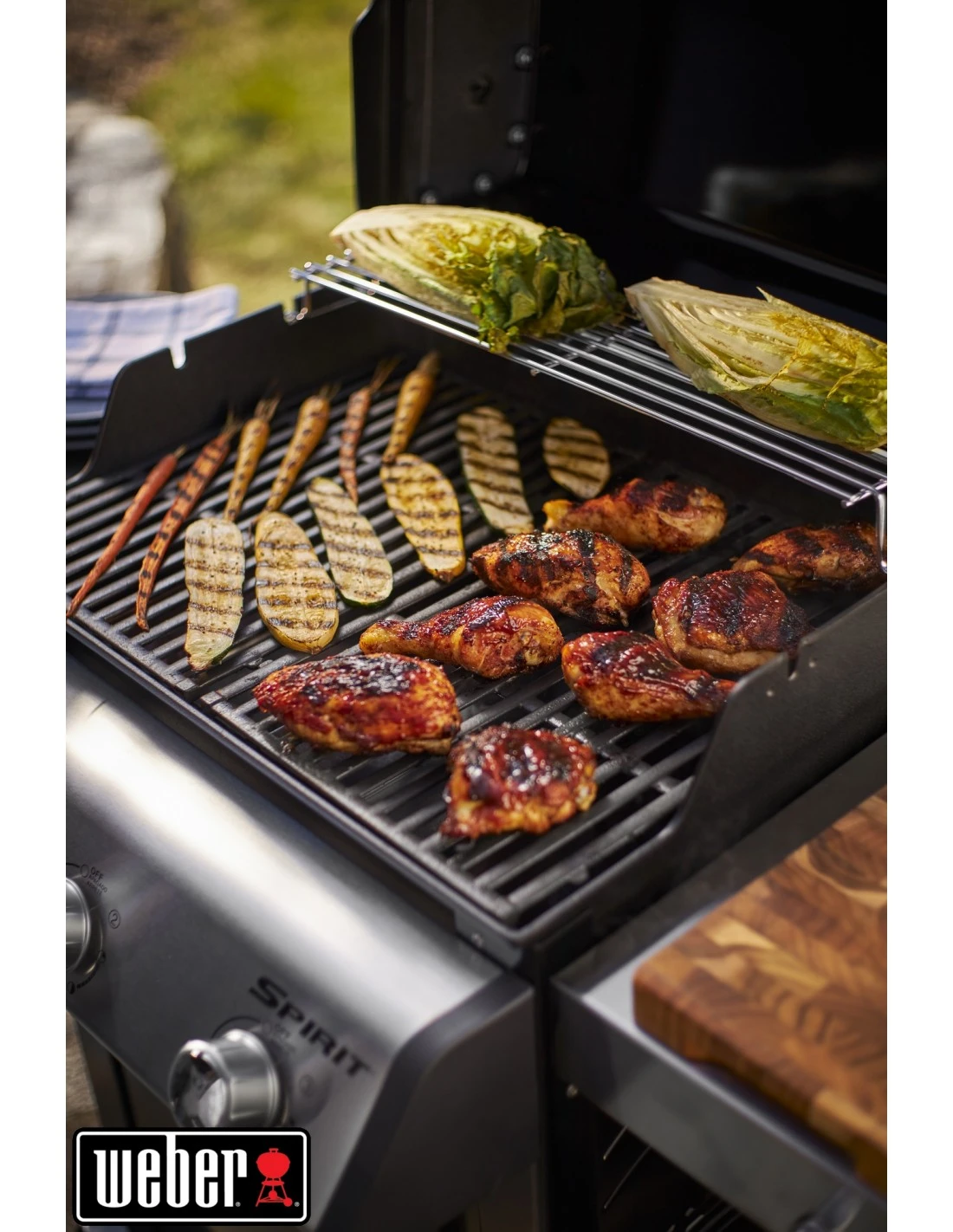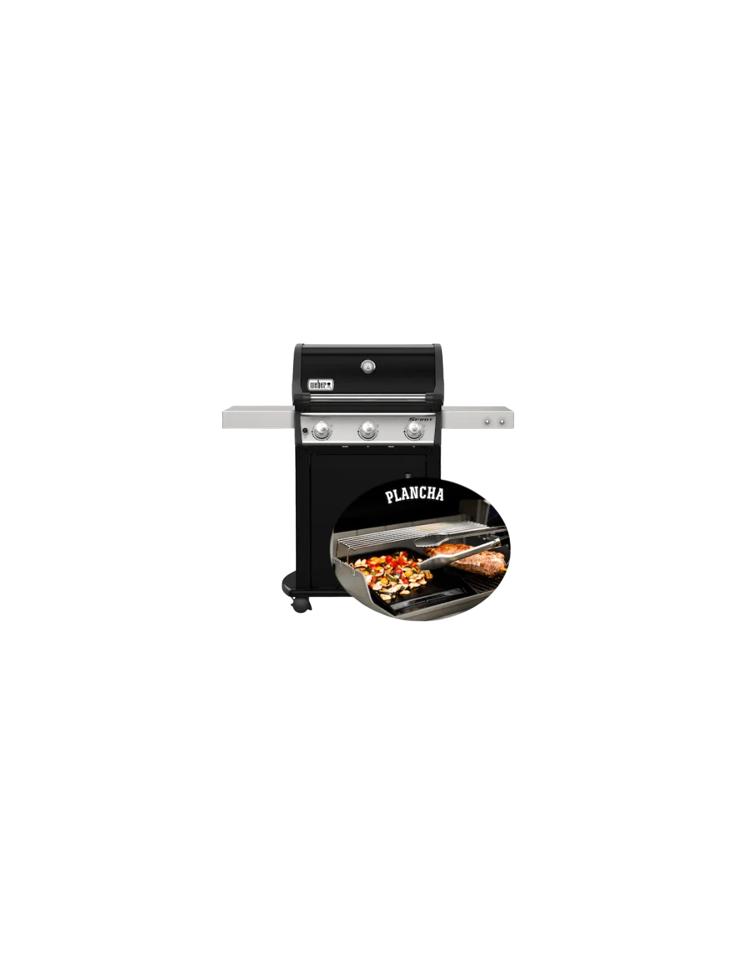 Le barbecue à gaz SPIRIT E-315 à l’avantage de proposer une grille de cuisson mixée avec une plancha en fonte émaillée !