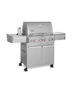 Le summum du barbecue à gaz Weber tout inox, avec rôtissoire et grande surface de cuisson !
